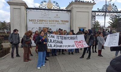 Yurtsuzlar, UKOME toplantısının yapıldığı Zeytinburnu'nda bulunan Çırpıcı Sosyal Tesisi önünde "Zam istemiyoruz, ulaşıma ulaşamıyoruz" yazılı pankart açarak eylem yaptı