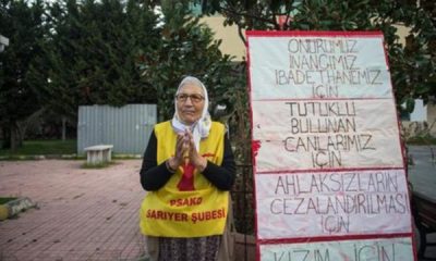 Pir Sultan Abdal Kültür Derneği İstanbul Sarıyer Şube Başkanı Zeynep Yıldırım’ın tutuklanmasında sonra dernek önünde oturma eylemi yapan 80 yaşındaki Kezban Bektaş’ın eylemi...