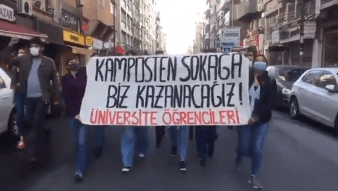 Osmanbey’de ise “Kampüsten sokağa biz kazanacağız” pankartı ile Taksim’e doğru yola çıkan üniversite öğrencilerine de müdahale eden polis yürüyüş yapan bütün öğrencileri gözaltına aldı.