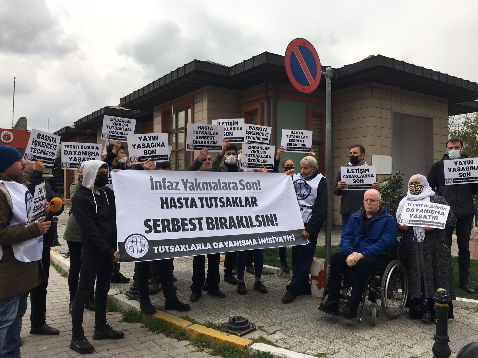Tutsaklarla Dayanışma İnisiyatifi (TDİ), hapishanelerdeki hak ihlallerine karşı 19 Aralık’a kadar sürdüreceği kampanya kapsamında, Bahçelievler’de bulunan Yenibosna Adili Tıp Kurumu (ATK) önünde açıklama yaptı. Açıklamaya, Hakların Demokratik Partisi (HDP) Milletvekili Musa Piroğlu da katıldı. Açıklamada, “İnfaz yakmalara son! Hasta tutsaklar serbest bırakılsın!” yazılı pankart açılırken, “Yayın yasağına son”, “Zindanlar yıkılsın, tutsaklara özgürlük”, “Tecrit öldürür dayanışma yaşatır”, “Baskıya, işkenceye, tecride son”, “Politik tutuklara özgürlük” yazılı dövizler taşındı.