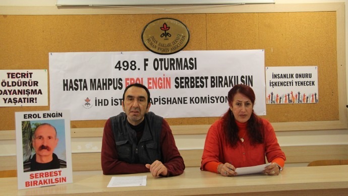İnsan Hakları Derneği (İHD) İstanbul Şubesi Hapishaneler Komisyonu, her hafta düzenlediği “F oturumu” eyleminin 498’incisini dernek binasında gerçekleştirdi. Komisyon üyeleri, bu hafta Tekirdağ 2 Nolu F Tipi Hapishanesi’nde tutulan 47 yaşındaki Erol Engin’in durumuna dikkat çekti.