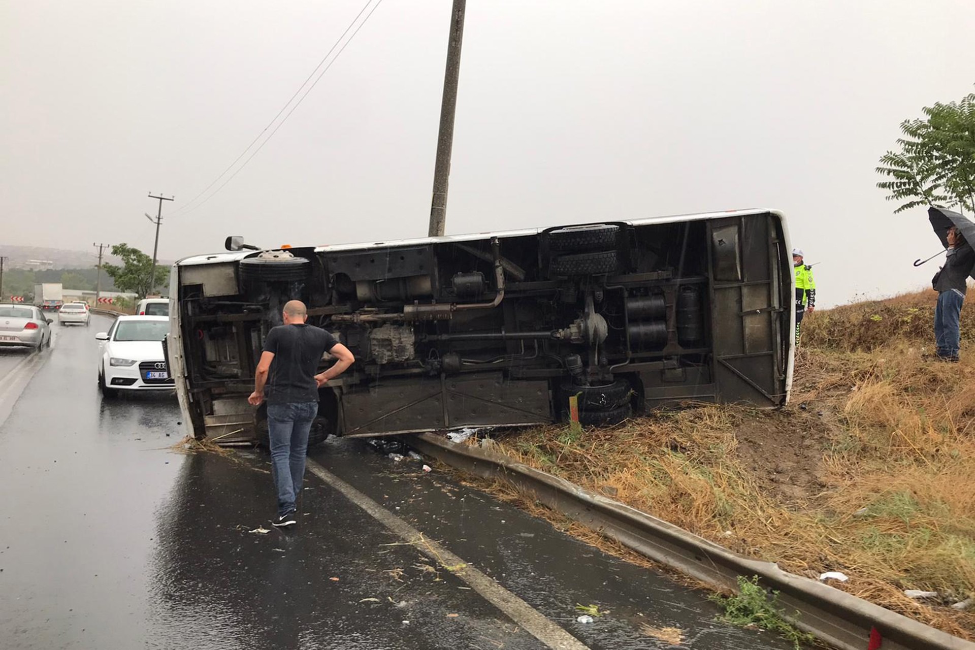 Tekirdağ’ın Ergene ilçesinde bir inşaat firmasında çalışan 3 işçinin bulunduğu servis minibüsü kontrolden çıkarak devrildi.