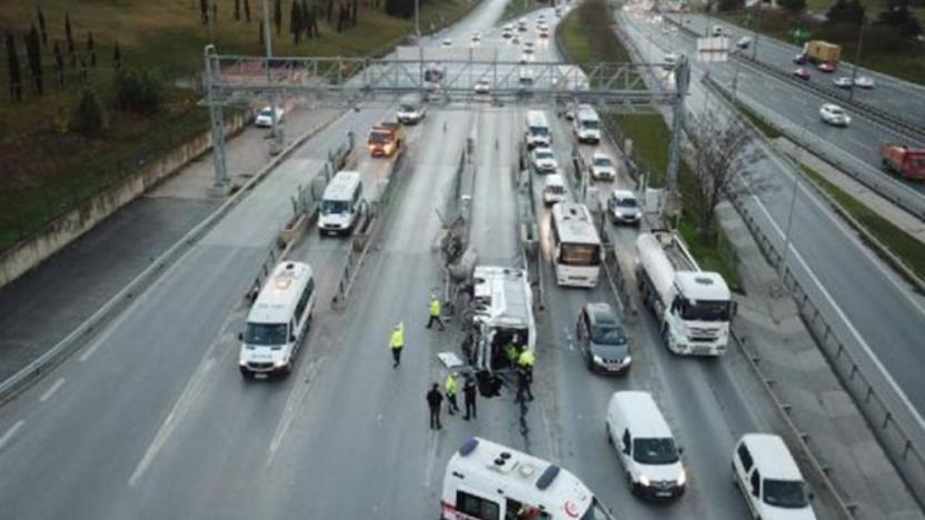 TEM’de işçi servisi midibüsü devrildi: 7 işçi yaralandı