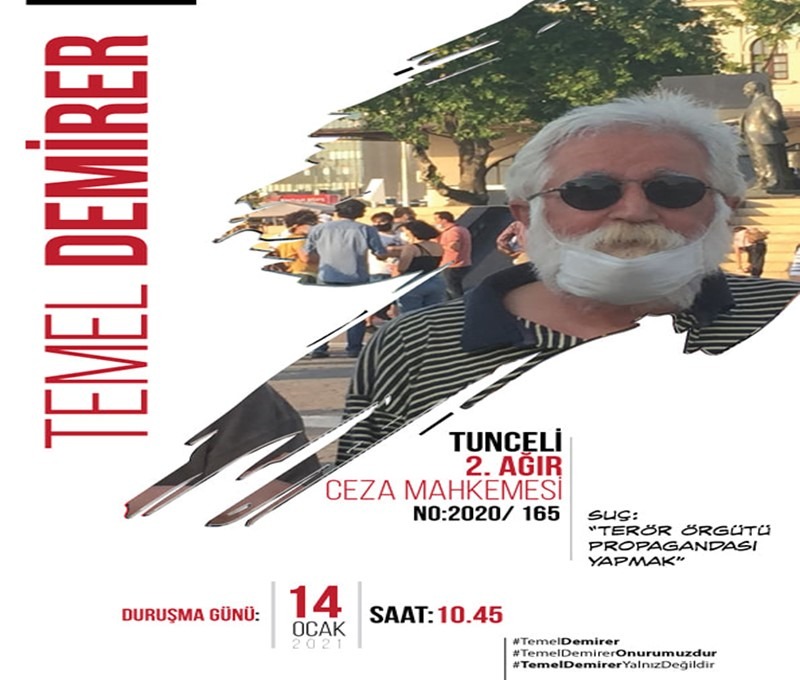 Yazar Temel Demirer hakkında, 20 Mart 2019 tarihinde Dersim Demokratik Halk Dayanışmasının Hozat’ta gerçekleştirdiği seçim etkinliğinde yaptığı konuşma nedeniyle soruşturma açılmıştı. Açılan soruşturma kapsamında 17 Ocak 2020’de Kartal/Yakacık Karakolunda ifadesi alınan Temel Demirer’in yargılandığı davanın ilk duruşması yarın Dersim’de yapılacak.