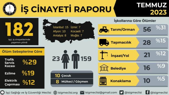 İşçi Sağlığı ve İş Güvenliği Meclisi’nin açıkladığı rapora göre, temmuz ayında en az 182 işçi hayatını kaybetti.
