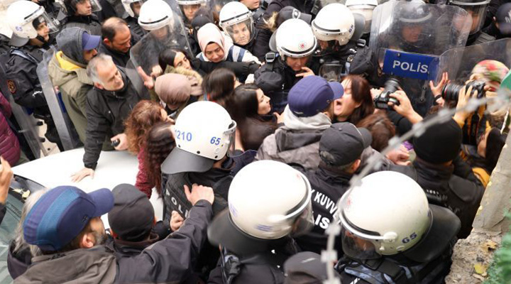 25 Kasım günü Beyoğlu’nda yürüyüş için toplananlara müdahale eden polisin 226 kişiyi fiziksel şiddet kullanarak gözaltına aldığı belirtilen raporda şu bilgiler kaydedildi: “Gazetecilerin görüntü alması engellendi. Gözaltına alınanlar gözaltı aracında, götürüldükleri hastanede ve karakolda da işkence ve diğer kötü muameleye maruz kaldı, 1 kişinin bacağı kırıldı. Yabancı uyruklu 2 kişi Geri Gönderme Merkezi’nde tutuluyor. Ankara’da ‘İran’dan Afganistan’a, Kürdistan’dan Türkiye’ye kadınlar direnişte’ yazılı döviz gerekçe gösterilerek 7 kişi ‘örgüt propagandası yaptıkları iddiasıyla gözaltına alındı. Gözaltına alınanların uzun bir süre ters kelepçeli olarak bekletildiği ve avukatları ile görüşmelerine polis tarafından izin verilmediği bildirildi. Cizre’de yürüyüşe müdahale eden polis 22 kişiyi fiziksel şiddet kullanarak gözaltına aldı. Müdahale sırasında 1 kişinin kolu çıktı. Gazeteciler engellendi, cep telefonu ile görüntü kaydeden 2 kişi gözaltına alındı. Van’da HDP il binasında toplananların binadan çıkmasına polis tarafından izin verilmedi. Binadan çıkmak isteyenlere yönelik biber gazlı müdahale sırasında 1 kişinin yaralandığı öğrenildi. Ağrı’da yürüyüşe müdahale eden polis 5 kişiyi gözaltına aldı. Erzurum’da yürüyüşe müdahale eden polis 1 kişiyi gözaltına aldı. Karaburun’da yürüyüşte taşınan bir döviz nedeniyle 1 kişinin eylem sonrasında Cumhurbaşkanı’na hakaret iddiasıyla ifadesinin alındığı ve daha sonra serbest bırakıldığı öğrenildi.”