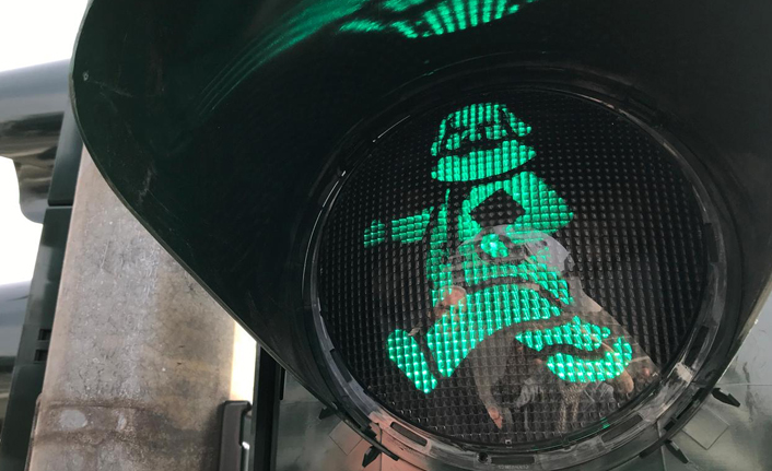 Bu ilginç trafik ışığı, ünlü düşünürün 200’üncü doğum günü anısına tasarlandı. 5 Mayıs 1818 tarihinde Almanya’nın Trier kentinde doğan filozof, 17 yaşına kadar burada yaşadı.