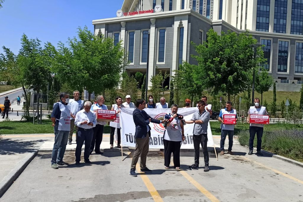 17 Nisan’da başlatılan imzaların teslimi ve basın açıklaması için Sağlık Bakanlığı’nın ana kapısına giden TTB Merkez Konseyi üyelerine polis saldırdı. Saldırının ardından basın açıklaması bakanlık önünde yapıldı.