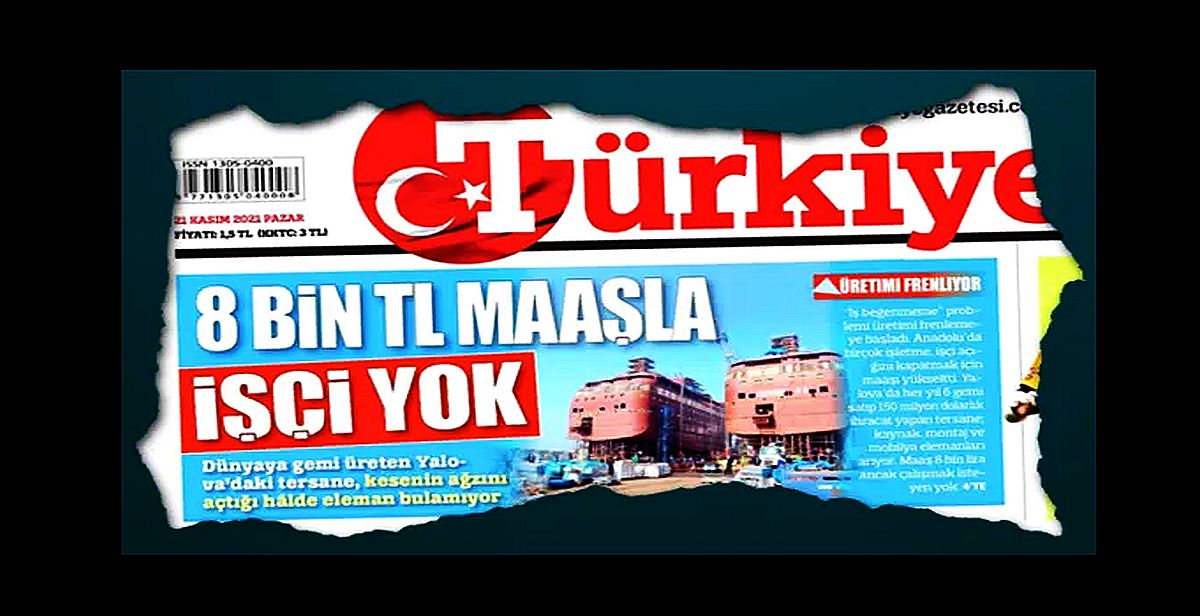Haberde, “Dünyaya gemi üreten Yalova’daki tersane, kesenin ağzını açtığı haberde eleman bulamıyor”, “İş beğenmeme problemi üretimi frenlemeye başladı. Anadolu’da birçok işletme, işçi açığını kapatmak için maaşı yükseltti. Yalova’da her yıl 6 gemi satıp 150 milyon dolarlık ihracat yapan tersane, kaynak, montaj ve mobilya elemanları arıyor. Maaş 8 bin lira ancak çalışmak isteyen yok” gibi ifadeler yer aldı.