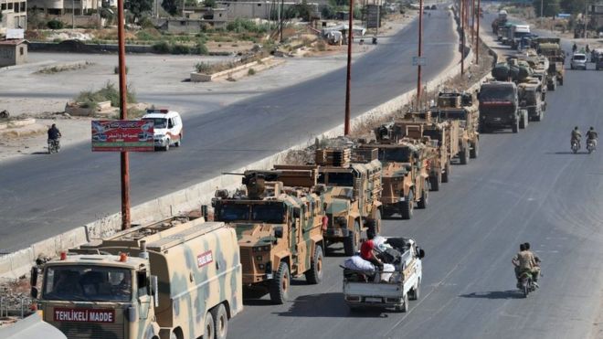 Han Şeyhun düşmek üzereyken de Türkiye yine üç askeri konvoyla takviye yapmaya çalıştı ama bu gecikmiş bir hamleydi. M-5 otoyolunu kesen Suriye ordusu ilk konvoyun ilerleyişini bir hava saldırısı ile durdurdu. Saldırıda konvoya eşlik eden Feylak El Şam’dan üç kişi öldü. Ölenlerden biri komutandı. Suriye ordusunun riskli hamlesi, Türkiye’nin haziran ve temmuzdaki gibi dengeyi değiştiren yardımlarına izin verilmeyeceğini gösterdi. Bunun Rusya’nın bilgisi ve onayı dışında olduğu söylenemez ki bazı kaynaklar konvoyun vurulmasının ardından havalanan Türk F-16 uçaklarına Rus Su-35 uçaklarının önleme yaptığını iddia ediyor.