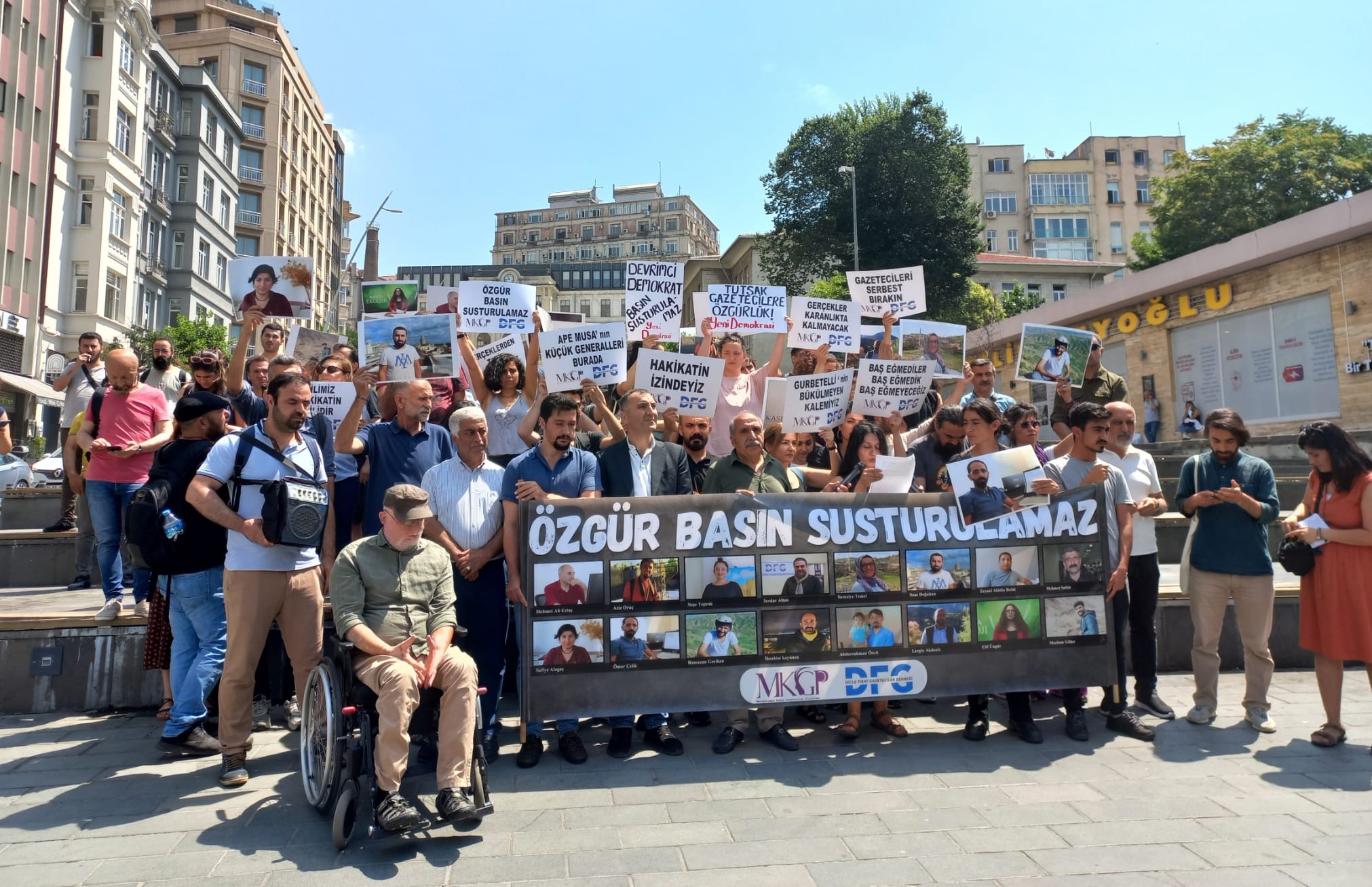 Konuşmaların ardından eylem, “Gözaltılar, tutuklamalar, baskılar bizi yıldıramaz”, “Özgür basın susturulamaz” sloganlarıyla sona erdi.