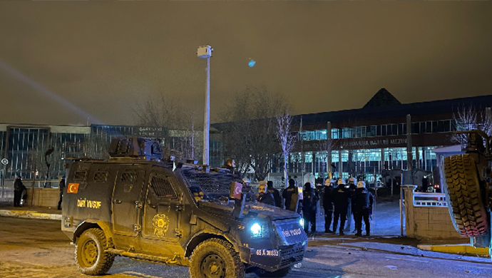 Van Büyükşehir Belediyesi Eşbaşkanı Abdullah Zeydan’a verilen 3 yıl 9 ay hapis cezasına karşı başlatılan nöbet eylemi sürerken, yüzlerce polis belediyeye sabahın erken saatlerinde baskın düzenledi.