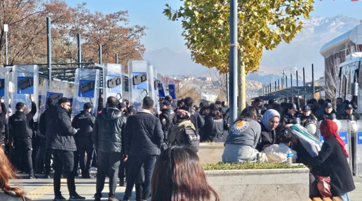 Van Yüzüncü Yıl Üniversitesi öğrencilerinin gerçekleştirdiği eyleme saldıran polis, çok sayıda öğrenciyi ters kelepçe işkencesiyle gözaltına aldı.