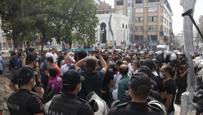 Açıklamanın ardından sloganlar atarak dağılan kitleye polis gaz bombası ve tazyikli su ile saldırdı. Saldırıda çok sayıda kişi darp edilirken, 5 kişi işkenceyle gözaltına alındı.
