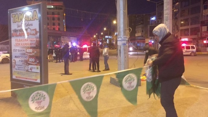 Halkların Demokratik Partisi (HDP) Van’da yapacağı 3’üncü Olağan Kongresi öncesi kentin çeşitli yerlerine astığı bayrakları polis söktü