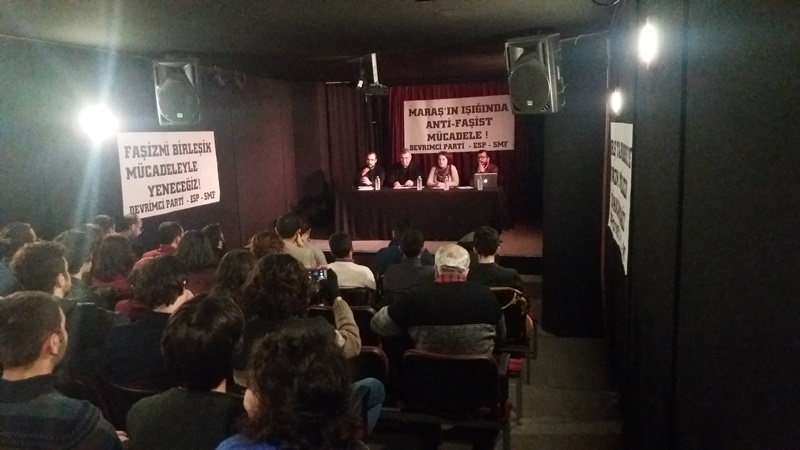 Ezilenlerin Sosyalist Partisi (ESP), Sosyalist Meclisler Federasyonu (SMF) ve Birleşik Devrimci Parti, İstanbul Okmeydanı’nda bulunan YÇKM’de “Maraş’ın ışığında anti faşist mücadele” konulu panel düzenledi.