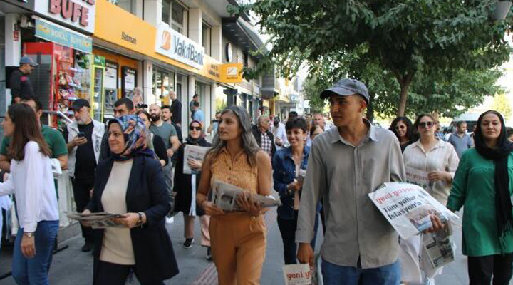 Batman’da Yeni Yaşam gazetesi dağıtımcılarının fiziki takibe alınması, gazete abonelerini tehdit edilmesi protesto edildi. Kentte bulunan siyasi parti ve kurumlar,  Halkların Eşitlik ve Demokrasi Partisi (DEM Parti) Batman İl Örgütü önünde açıklama yaptı. Açıklamaya Dicle Fırat Gazeteciler Derneği (DFG) üyeleri, Tevgera Jinên Azad (TJA),  Barış Anneleri Meclisi ve gazeteciler katıldı.