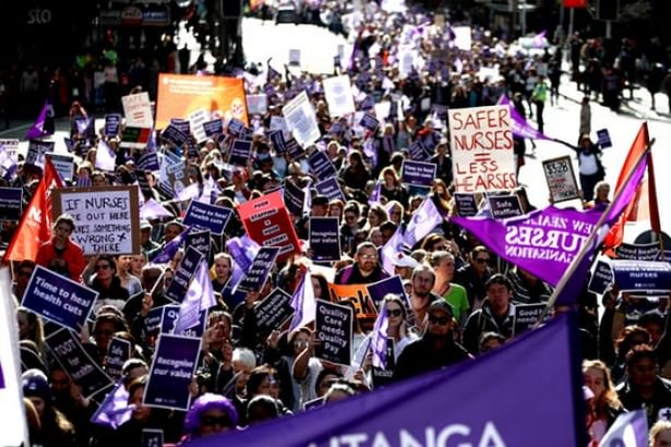 Yeni Zelanda’da 30 bin hemşire 24 saatliğine greve gitti. Çalışma koşullarına tepki gösteren hemşirelerin grevi, son 30 yılda yaşanan ilk benzer grev oldu.