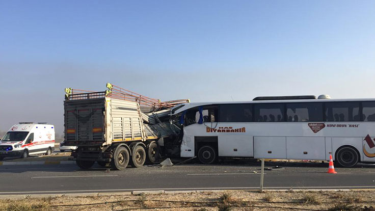 Has Diyarbakır firmasına ait yolcu otobüsü ile bir tır, karayolunun 20. kilometresinde çarpıştı.
