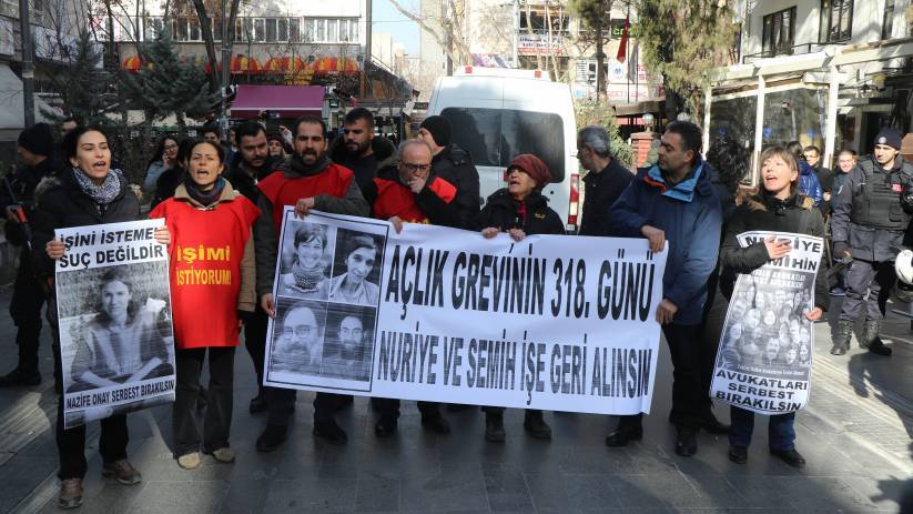 Nuriye Gülmen ve Semih Özakça’nın açlık grevi eylemi ise 318’inci gününde devam ediyor.