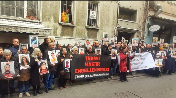 İnsan Hakları Derneği (İHD) İstanbul Şubesi Hapishane Komisyonu, hasta tutukluların durumuna dikkat çekmek için her hafta düzenlediği “F Oturumu” eyleminin 571’incisini dernek binası önünde gerçekleştirdi. Bu haftaki eylemde, İzmir Aliağa 3 No’lu T Tipi Hapishanesi’nde tutuklu bulunan yüzde 94 engelli ağır hasta tutuklu Ali Kurban’ın sağlık durumuna dikkat çekildi.