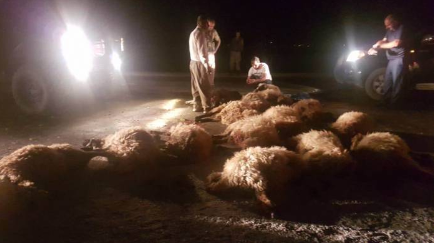 Hakkari’nin Yüksekova ilçesinde askeri zırhlı aracın çarptığı 20 koyun öldü. Gece saatlerinde hayvanlarını Civyan yaylasından getiren köylülerin koyunlarına Güldere (Civyan) köyü yakınlarında zırhlı araç çarptı. Konvoy halindeki zırhlı araçların çarpması sonucu Selim Altan’a ait 20 koyun öldü.