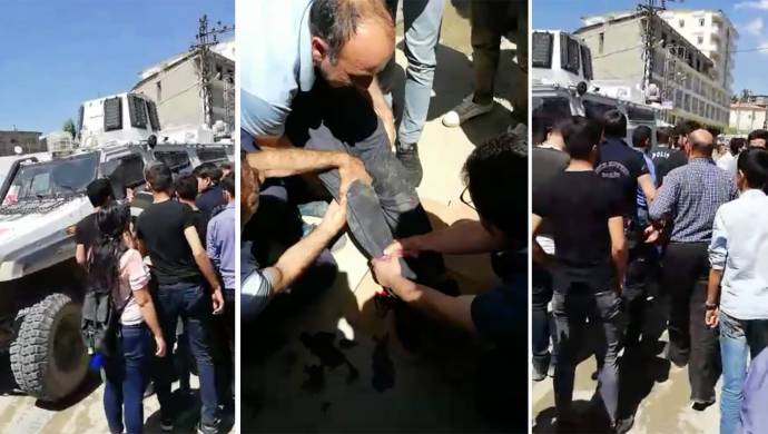 Hakkari’nin Yüksekova ilçesinde zırhlı araç Halit Artık adlı bir kişiye çarptı. Cengiz Topel Caddesi’nde karşıdan karşıya geçmek isteyen 56 yaşındaki Halit Artık’a hızla giden zırhlı araç çarptı. Çarpmanın etkisiyle kanlar içinde yere yığılan Artık, çevredekilerin yardımıyla Yüksekova Devlet Hastanesi’ne kaldırıldı. Duruma tepki gösteren yurttaşlar polislerin ağır hakaret ve tehditlerine maruz kaldı.