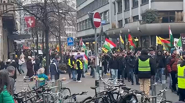 HTŞ-IŞİD ve paramiliter çetelerin saldırılarına karşı Avrupa’nın birçok kentinde eylemler sürerken, İsviçre’nin Zürih kentinde de binlerce kişi düzenlenen mitingde bir araya geldi. Yapılan mitingin ardından binlerce kişi yürüyüşe geçerek saldırıları protesto etti.