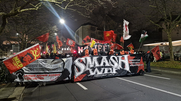 Bürkliplatz’da toplanan kitle, “Emperyalist yağmaya ve işgal saldırılarına son” şiarıyla yürüyüşe geçti. Eylemin başlangıcında yapılan konuşmalarda, WEF’te alınan kararların Filistin halkına yönelik siyonist soykırımdan ve Ortadoğu’daki işgal politikalarından bağımsız olmadığı vurgulandı.